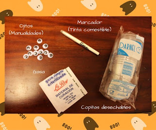 Coloca los ojitos y dibuja la boca con marcador permanente. Recuerda dibujarle la cicatriz en la frente. Rellena con gelatina de limón.