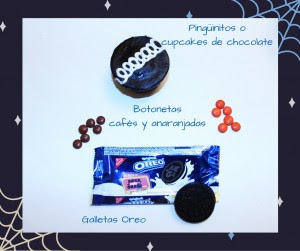 Abre dos galletas y colócalas sobre el pingüinito. Pon una botoneta café en cada ojo como la pupila. Para la nariz, usa una botoneta anaranjada. Recuerda que la tienes que poner de forma vertical. Por último, corta dos triangulitos de galleta para representar las orejas.